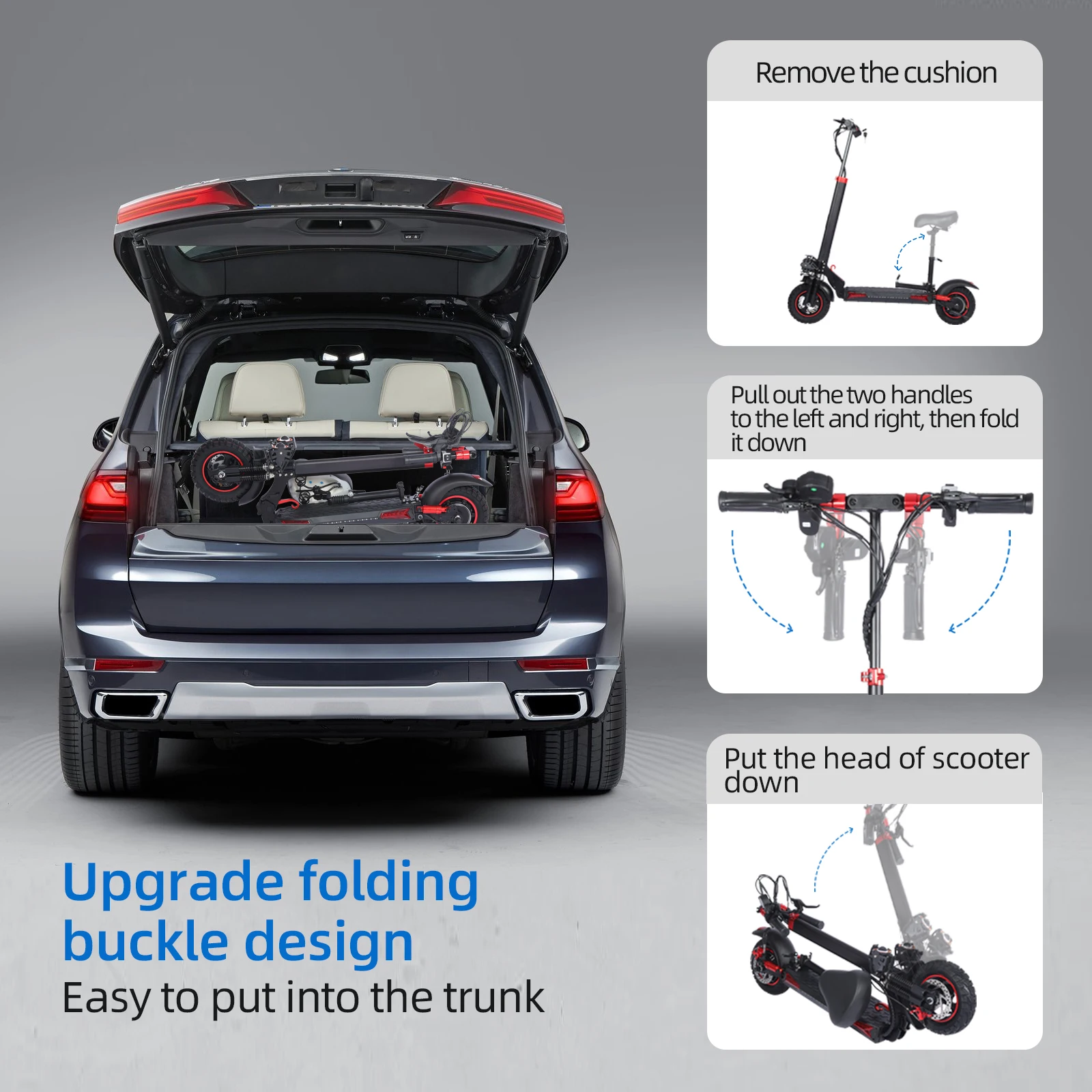 The 1200W Off-Road Electric Scooter with Seat delivers powerful performance, long range, and exceptional comfort for daily commuting and weekend adventures. Powered by a 1200W motor, it achieves speeds of up to 30MPH, making it an ideal choice for riders who value both speed and reliability. Its 48V 21Ah high-capacity battery provides a range of up to 35 miles on a single charge, allowing for extended rides without frequent recharging. Built with off-road tires and shock-absorbing suspension, this scooter offers superior grip and stability across both city streets and rougher terrain. The foldable design makes it portable and easy to store, while the removable seat gives riders the option of standing or sitting depending on comfort. Safety is a top priority with its dual braking system, ensuring responsive and secure stops in all conditions. The bright LED display provides real-time information on speed, battery life, and mileage. Constructed from durable materials, this scooter is designed to handle daily use while maintaining a sleek, modern appearance. Perfect for adults looking for an eco-friendly, high-performance commuting option, this model combines speed, range, and convenience in one package. Whether for work, school, or recreation, the 1200W scooter ensures a smooth and efficient ride every time.